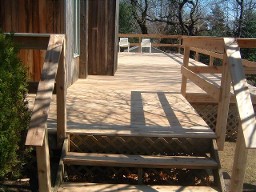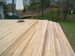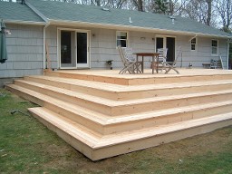 Cedar decks are the most prevailent in the hamptons. #2 Cedar decking may be the least expensive but it is still a beautiful wood. It can be easily maintained with a clear oil, water repellant or a colored stain to prolong the life. You will get approximately 15 years on a well maintained cedar deck.
